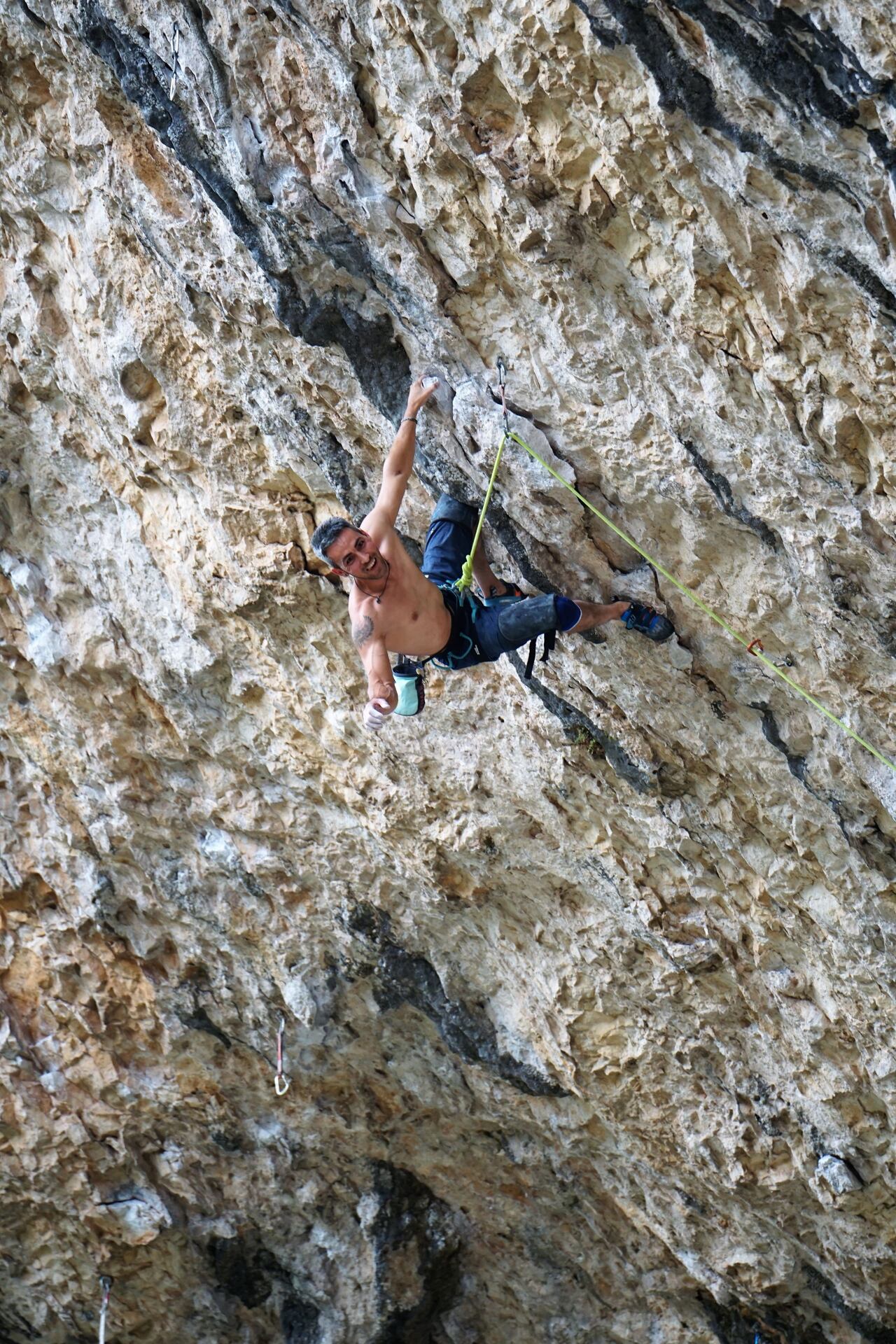 Prudence: Při lezení na vápně mám rozhodně nejradši všechny ta „kolena“! Vápenec často vytváří krápníkové útvary a zejména tady v Rodellaru je krápníků opravdu hodně! Vlastně mu často říkáme „Rodillar“ (rodilla znamená ve španělštině koleno). Kolena, která tady můžeš najít, jsou prostě monstrózní! Často se mi podaří najít i „no-hand rest“ skoro v každé cestě, kterou zkusím! Pro mě osobně jsou převislé cesty v Rodellaru dost dobrodružné, zejména pak ty 40 až 50 metrů dlouhé maratony!