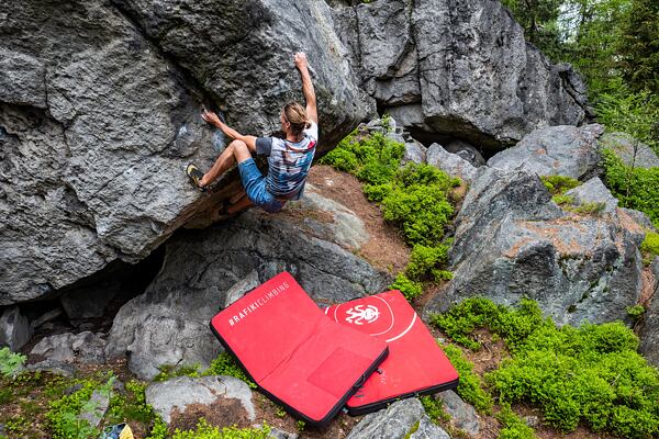 Klasická a skladná, bouldermatka tvořena dvěma díly, kde nechybí kobereček na očištění lezeček, „batohový“ zádový systém pro pohodlné nošení (včetně odnímatelného bederního pásu) nebo praktická oka pro pohodlné uchycení do rukou a navíc s možností výměny vnitřního polstrování!