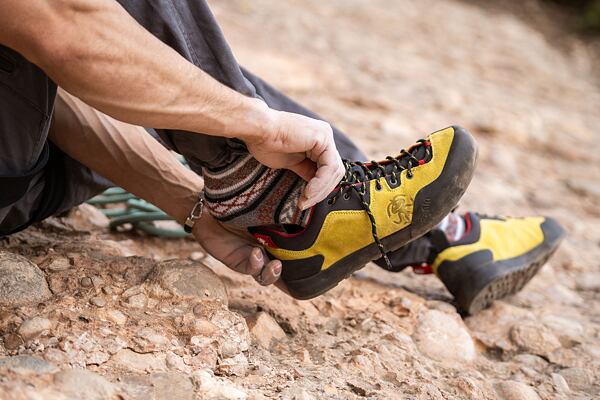 Samozřejmostí jsou vychytané detaily jako poutka na připnutí, prodloužené šněrování až ke špičce, gumová ochrana palce nebo lezecká špička. K tomu svršek z prémiové kůže nebo lepivá podrážka, aby ti to při nástupu už nikde "neujelo"!