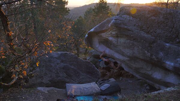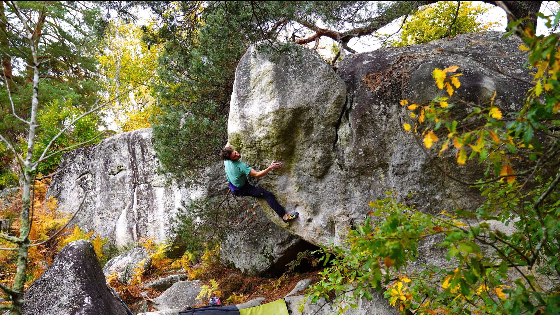 Velmi zkušený bouldrista, který má Fontainebleau jako druhý domov